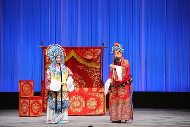 京剧《龙凤呈祥》取材于《三国演义》,由《甘露寺》《美人计》《回荆州》《芦花荡》等故事组合而成,是一部家喻户晓的三国戏,情节生动,场面宏大,每逢佳节必演,常看常新。 孙刘联姻御曹敌,龙凤相偕共此生。《龙凤呈祥》既有宏大磅礴的场面,又有韵味十足的经典唱段;既能看到武场的热闹,又能看到文场的醇厚;更有吉祥喜庆的好兆头。
