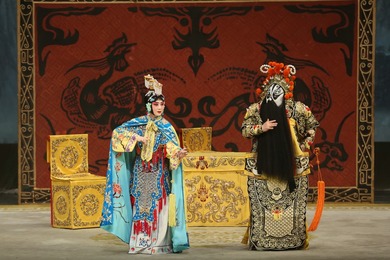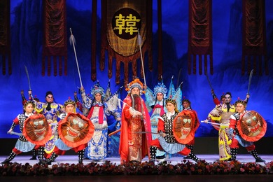 《霸王别姬》由齐如山根据明代沈采所编《千金记》撰写初稿,后经吴震修等人修改、加工、润色而成。1922年,梅兰芳与杨小楼于北京城南的“第一舞台”首次公演此剧,把一对英雄美人的生死诀别演绎得惊心动魄、凄美壮丽。历代京剧名家传承前辈技艺,各有精湛诠释。