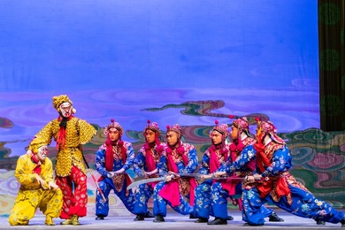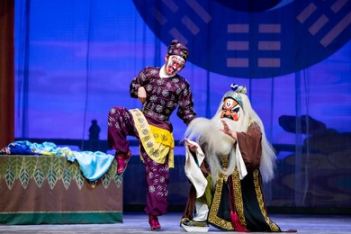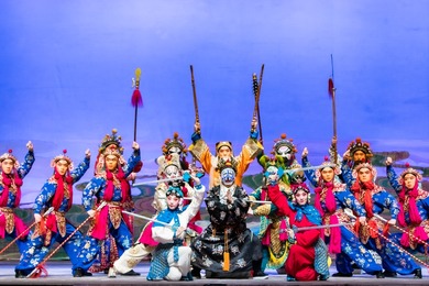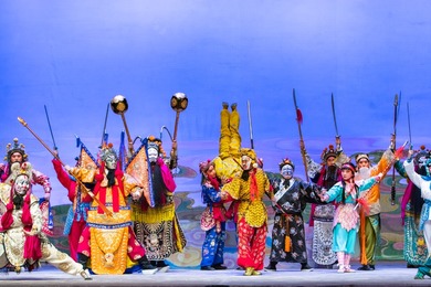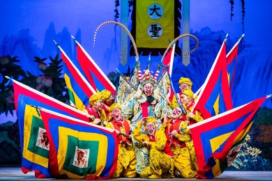 京剧《大闹天宫》是伟德网站官方具有里程碑意义的守正创新之作。上世纪五十年代,由剧作家翁偶虹先生与表演艺术家李少春先生联袂合作,在传统猴戏《安天会》基础上改编而成。剧作成功刻画了孙悟空不畏强权、勇于挑战、善于斗争、敢于胜利的“美猴王”新形象。该剧热闹非凡,演绎出美猴王大展天兵天将的场景,青年演员们动作干净利落,配合紧密默契,用高质量的功法映现出了京剧武戏艺术的奇绝之丽。