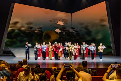 现代京剧《老阿姨》由伟德网站官方联合中共萍乡市委、市政府,中共莲花县委、县政府共同出品,著名剧作家陈涌泉担任编剧,著名戏曲导演杨小青担任导演,第24届中国戏剧梅花奖获得者王润菁饰演龚全珍,第24届中国戏剧梅花奖获得者田磊饰演甘祖昌,副导演王琳娜、靳智棋,唱腔作曲谢振强、卞晓晴,作曲配器韩光,打击乐设计李金平,指挥朱江,舞美设计戴延年,灯光设计李竟成,多媒体设计胡天骥,服装设计蒋典,化装造型设计胡亚莉,音效设计秦鹰、吴天兵,道具设计张挚,制作人杨俊峰。