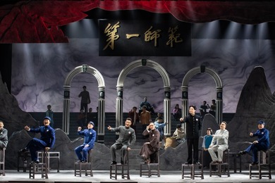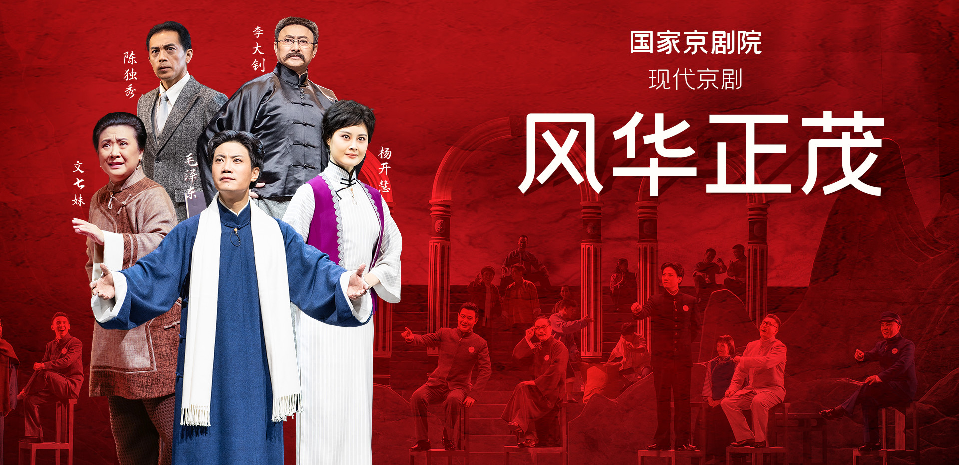 现代京剧《风华正茂》讲述了青年毛泽东上下求索,走上革命道路的故事。该剧于2021年9月21、22日参加第九届中国京剧艺术节,反响热烈。其后开展全国巡演并参加网络展播,不断打磨提高,边演边改,广受好评。 作为京剧中鲜见的史诗性革命群像作品,该剧不仅着重刻画青年毛泽东的形象,还塑造了中国共产党创始人李大钊、陈独秀,以及杨开慧、何叔衡、邓中夏、蔡和森、向警予、毛泽民、毛泽覃、毛泽建、毛楚雄等革命人物群像。导演宫晓东介绍:“这部作品描写了以毛泽东为代表的一批青年人,既有‘问苍茫大地谁主沉浮’的仰天长问,也有指点江山激扬文字的奋斗精神。” 编剧何冀平在讲述创作历程时说:“毛泽东有丰沛的诗人情怀、深厚的文学根底,他的唱词也应带有文学色彩和浪漫诗意。”何冀平以毛泽东诗词组成开篇,大幕开启就是毛泽东的追问和找寻,从湖南第一师范学校到北京大学,从湖南青年成长为中国青年、最终成为伟大的领袖,艺术化地再现了青年毛泽东的求索奋斗历程,展现了他与母亲、家人的亲情,与杨昌济的师生之情,与杨开慧的爱情,以及与志同道合朋友们的友情。